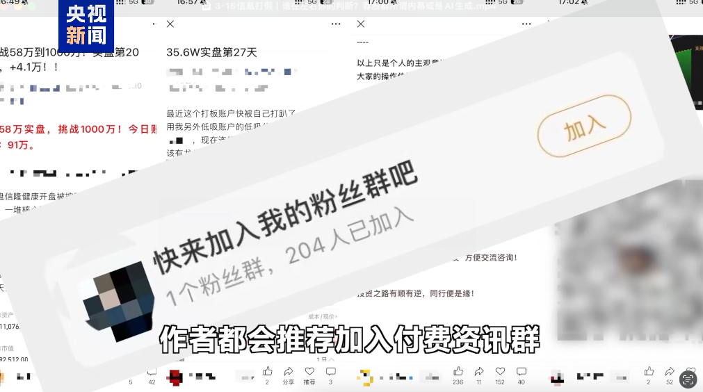 记者发现,在互联网上,以类似手法博取关注的账号不在少数,这家公司运营的群只是互联网账号中的冰山一角,记者还接连潜入了其他数十个所谓的资讯群。这些群绝大部分都满员,甚至有些还分支出了2号群、3号群。像“机构举报游资”的谣言就有数个群在传播,而他们无一例外都指向了一件事:卖课赚钱。上海财经大学金融学院院长曹啸:有些自媒体的“小作文”本身是带有恶意、欺诈性质的,就是为了误导或引导散户买或卖。