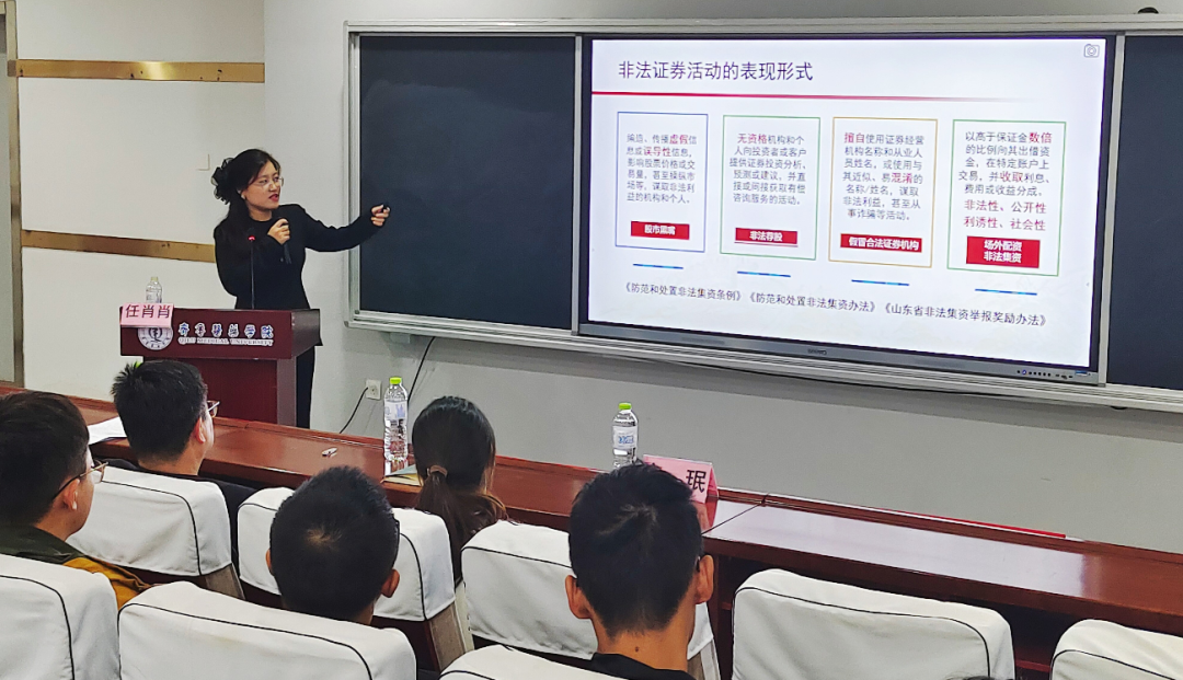 在“2025年世界投资者周”活动期间,为落实中国证监会、中国证券业协会推动的“一会、一局、一司、一校”投教合作机制,响应“推动投资者教育纳入国民教育体系”号召,普及金融知识,长城证券淄博营业部于2025年10月23日开展走进齐鲁医药学院宣传活动,齐鲁医药学院管理学院150余名在校师生参加本次活动。