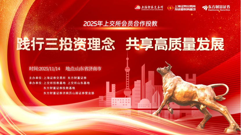 为切实提升投资者权益保护意识,积极引导投资者树立理性投资、价值投资、长期投资理念,2025年11月14日,由上交所与东方财富证券联合主办,上交所投教基地及东方财富证券济南历山路证券营业部联合承办的“践行三投资理念 共享高质量发展”会员合作投教活动,在上交所山东基地圆满举办。活动采用“线上+线下”相结合模式,共邀请到85名投资者参与,其中现场投资者62名,线上投资者23名。