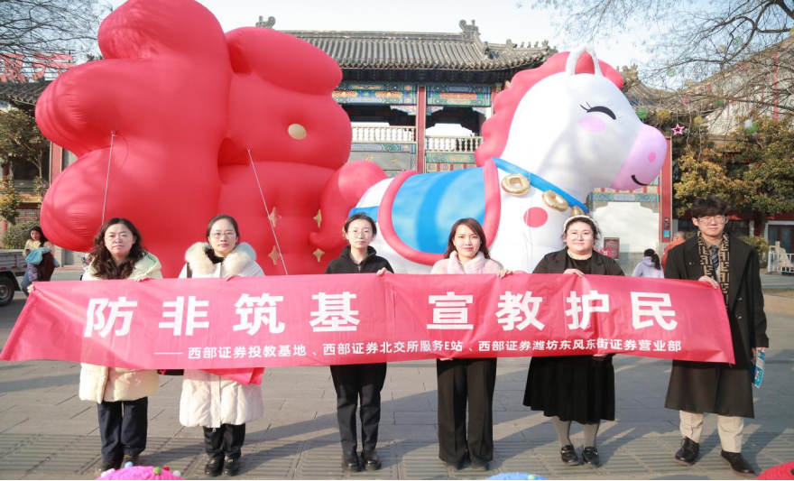 新春将至,潍坊十笏园作为本土特色民俗景区,成为市民逛年景、赏民俗、办年货的核心打卡地,汇聚了中老年群体、返乡人员、亲子家庭等各类人群。岁末年初资金流动频繁,以“新春高息理财”等为噱头的非法集资、非法证券期货活动越发频繁。为深入贯彻中央金融工作会议精神,落实“防非筑基 宣教护民”的常态化宣传要求,西部证券投教基地联合潍坊东风东街证券营业部立足新春民俗场景,于2月11日走进潍坊十笏园开展防非宣传活动,为市民欢度新春筑牢金融安全防线。